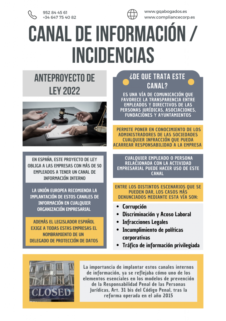 Estos canales se presentan como la herramienta más eficaz de los Sistemas de Cumplimiento Normativo para prevenir malas prácticas en estas organizaciones y que deriven en posibles delitos penales. Este anteproyecto de Ley refleja en España la intención de la Unión Europea para estandarizar todas las empresas activas en la región en unos niveles mínimos de control interno corporativo.